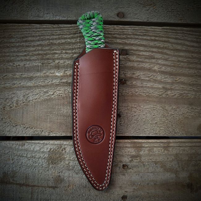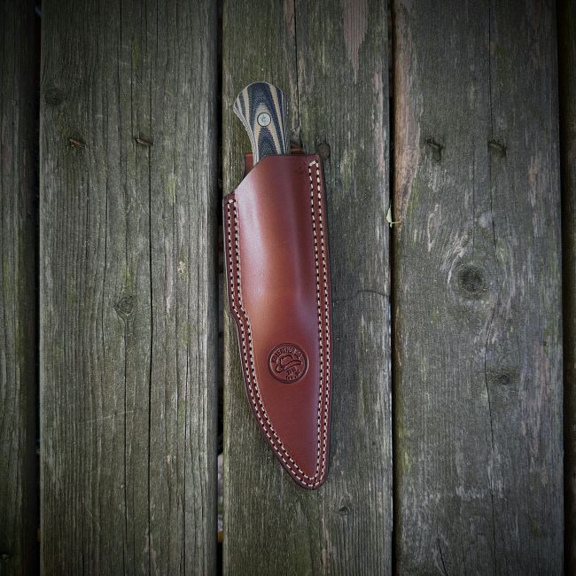 Belt slide that fits the Mini SpeedGoat , Blackfoot 2.0 or FeildCraft from Montana Knife Company. The sheath that you get will not have the MKC logo on it. I have seen sheaths that have been cut through and stitches cut. These knives are very sharp and you have to be patience when you reholster you knives, It takes a will to create that natural pocket for it to rest in. I will not replace for holes or cut threads. The color is Medium Brown